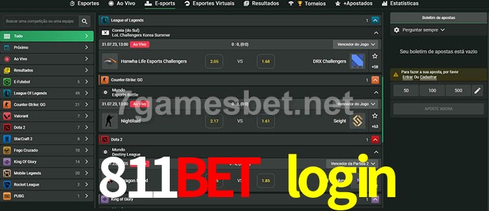 O 811bet login oferece uma grande seleção de opções de apostas em e-sports com probabilidades competitivas